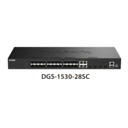 Managed Switch DGS-1530-28SC Řada DGS-1530 je součástí řady stohovatelných inteligentních přepínačů Layer 2 od společnosti D-Link, které poskytují kabelové gigabitové rychlosti pro metropolitní ethernetové a kampusové sítě.