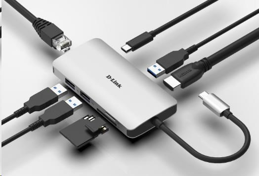 Rozbočovač D-Link DUB-M810 8 v 1 USB-C s rozhraním HDMI/ternetom/čítačkou kariet/prívodom napájania