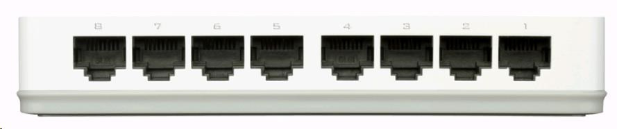 8portový 10/100M stolový prepínač - IEEE 802.3 10BASE-T - IEEE 802.3u 100BASE-TX - Podpora automatického vyjednávania pre každý port - Podpora polovičného/plného duplexu pri rýchlosti 10/100 Mb/s. - Podpora protitlaku pri poloduplexnej prevádzke - IEEE 802.podpora 3x Flow Control. - Auto MDI/MDIX- D-link Green - technológia úspory energie D-Link Green..
