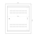 Datacom 19" rozvaděč pod omítku 4U+2U/150mm (plech) Nástěnná rozvaděčová datová skříň 4U vodorovně + 2U svisle je vyráběna pouze v jedné rozměrové variantě o rozměrech: vnější výška s rámem (bez rámu): 770 mm (670 mm) vnější šířka s rámem (bez rámu): 670 mm (570 mm) vnější hloubka s rámem (bez rámu): 150 mm (150 mm) Polohovatelné uchycení lišt: - Vertikální lišta 4U (pro umístění komponent ve vodorovné poloze): 110 mm od vertikální lišty 4U k zadní stěně rozvaděče, vertikální lišty lze přemístit kdekoliv v celé výšce rozvaděče. - Horizontální lišta 2U (pro umístění komponent ve svislé poloze): 350 mm (+-80mm) od horizontální lišty 2U ke dnu rozvaděče!!! Změna polohy horizontální lišty 2U je možná pouze před zaomítáním rozvaděče !!! - Tato datová skříň je určena jako rozvaděč pro instalaci prvků strukturovaných kabeláží a prvků telekomunikačních rozvodů. Vlastnosti: - vlastní odvětrávací otvory ve dveřích rozvaděče- skříň tvořena svařovaným skeletem, polohovatelné pozice vertikálních lišt Upozornění: svisle umístěné vertikální lišty 2U lze polohovat pouze před zabudováním rozvaděče- z čelní strany je rozvaděč osazen plechovými perforovanými dveřmi se dvěma panty- lehce nastavitelné levé/pravé otevírání- kovový zámek na klíč s jednobodovým zamykáním- v zadní části jsou 4 otvory pro případné uchycení na v SDK stěně /rozteč 10mm otvorů - 58,5mm x 400mm/- horní a spodní vylamovací průchody pro kabeláž /260x50mm/- před instalací do zdi možno odmontovat záda rozvaděče (rozměr odnímatelných zad 610x500mm), získáte tím větší hloubku pro instalaci. - IP krytí: IP20- povrchová úprava je provedena práškovou technologií- barva šedá