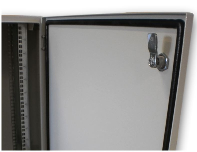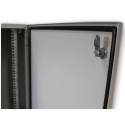 Uchycení je možné provést přes čtveřici otvorů na zadní straně skříně. Zavěšení dveří je provedeno na dvou, případně třech dveřních závěsech, a to podle výšky rozvaděčové skříně. Zajištění dveří proti otevření je provedeno pomocí jednobodových cylindrických zámků.