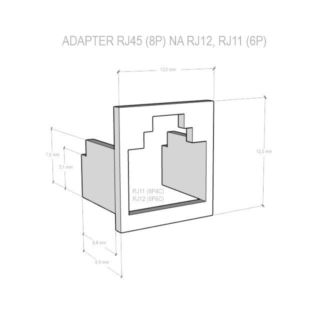 Redukční vložka RJ12 (RJ11) určený do RJ45 portu.