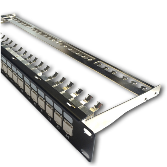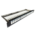 DATACOM Patch panel 19" STP 24 port CAT6A 1U čierny, vyvaz.lišta, beznástrojový