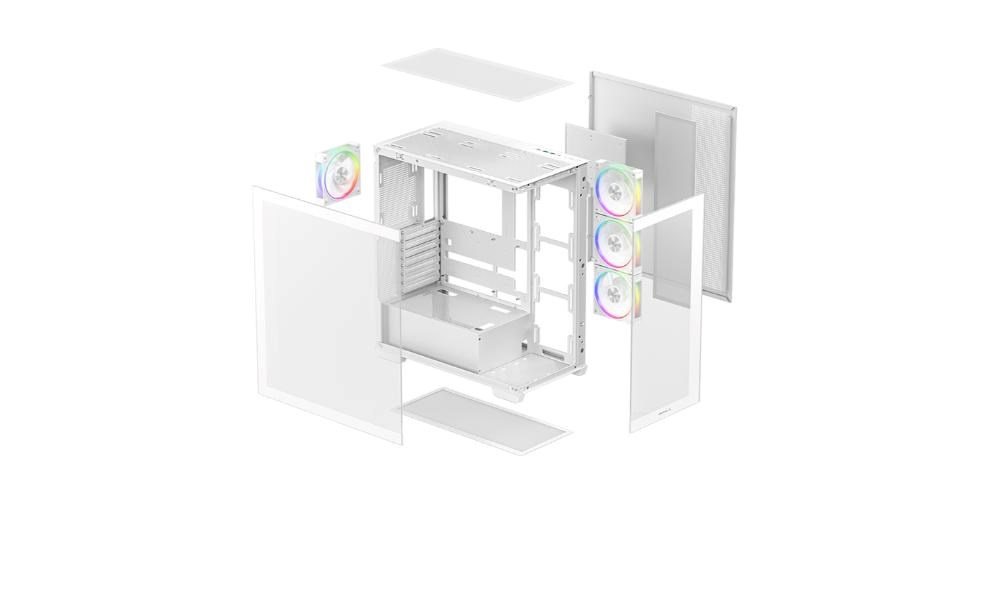 CG580 4F V2 WH je stylová jednoprostorová skříň, navržená tak, aby elegantně zviditelnila nejdůležitější komponenty. Je vybavena čtyřmi ARGB ventilátory, podporou vodního chlazení až do 360 mm a více možnostmi konfigurace ventilátorů, čímž kombinuje vzhled a špičkovou funkčnost.