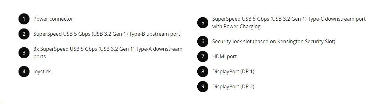 - 1 x USB 3.2 Gen 1 (5 Gbps) Typ-B upstream port (Vzad)