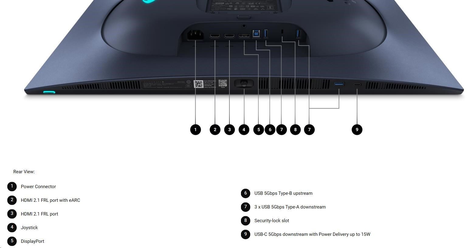 - 2 HDMI porty (HDCP 1.4 & 2.3) (Podpora až 3840 x 2160, 240 Hz, FRL, HDR, VRR podľa špecifikácie v HDMI 2.1) (vrátane jedného HDMI 2.1 FRL s eARC/ARC - na podporu Dolby ATMOS signálového passthrough)