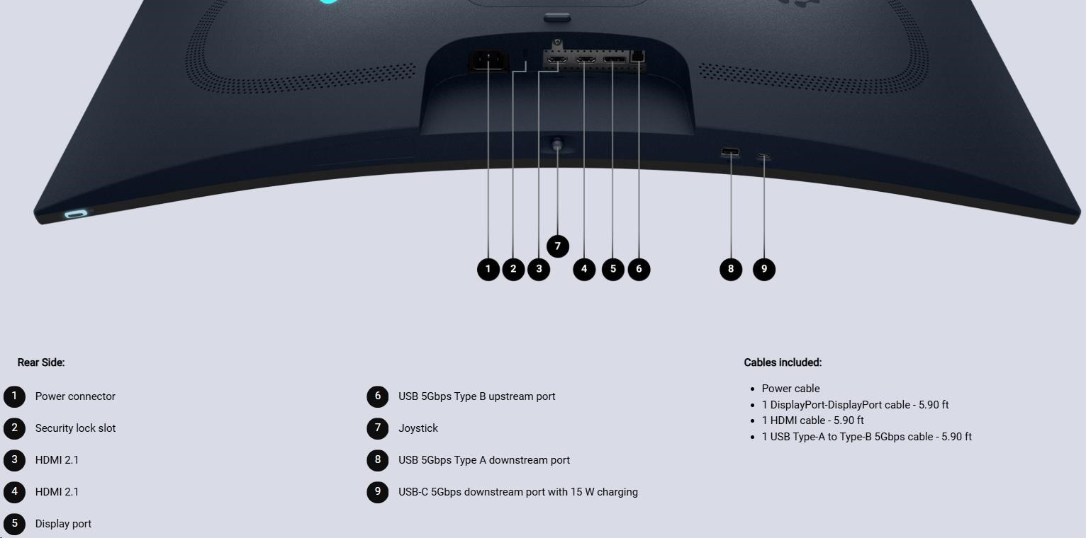 • 2 HDMI porty (HDCP 1.4 & 2.3) (Podporuje až 3440 x 1440, 240 Hz, FRL, HDR, VRR v súlade so špecifikáciami HDMI 2.1)