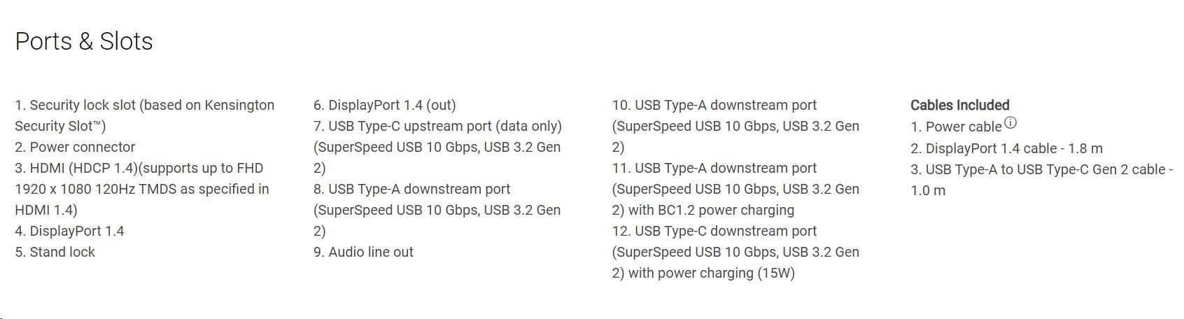 • 1 x USB Type-C upstream port (iba dáta, SuperSpeed USB 10 Gbps, USB 3.2 Gen 2)