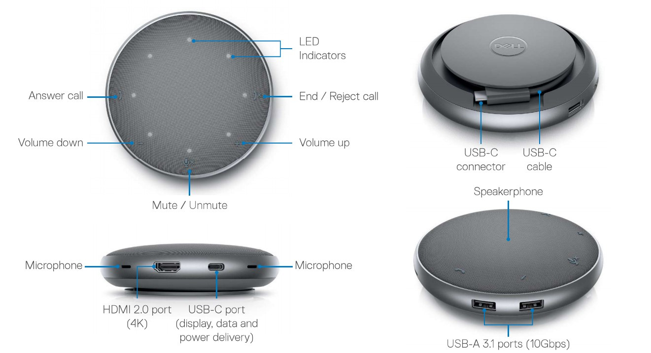 Dell Mobile Adapter SpeakerPhone MH3021P s USB-C