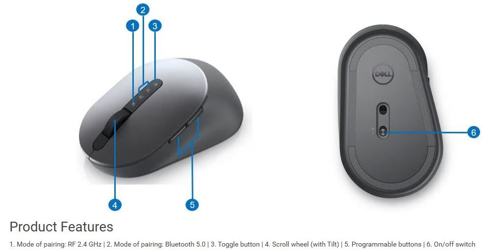 Popis Dell MS5320W/Kancelárska/Optická/Pre pravákov/1 600 DPI/Bezdrôtová USB/Čierna