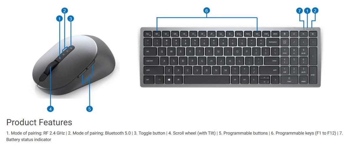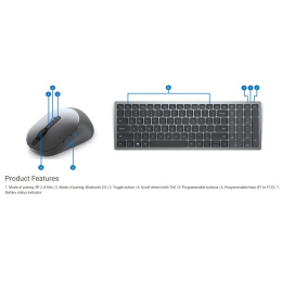 Popis produktu: Pohodlne prepínajte Bezproblémové pripojenie ku trom počítačom. Dva spôsoby bezdrôtového pripojenia Bluetooth 5.0 a 2,4 GHz vám umožňujú ľahko prepínať medzi notebookom, stolovým počítačom alebo 2-v-1 len kliknutím na tlačidlo. Snadné párovanie Okamžite spárujte každé zariadenie s kompatibilným systémom Windows 10 pomocou Bluetooth, bez potreby konfigurovať nastavenia cez Microsoft Swift Pair. Kompatibilita so systémami Windows, Chrome, Android a Mac poskytuje maximálnu flexibilitu na všetkých vašich zariadeniach. Postavené tak, aby vydržalo Vďaka 36 mesačnej výdrži batérie vydrží 3x dlhšie než predchádzajúca generácia. Teraz sa už nemusíte starať o častú výmenu batérií. Jednoducho spoľahlivé Buďte si istí kvalitou. Ak nebude fungovať počas 3-ročnej záručnej doby, služba Dell Advanced Exchange Service vám dodá náhradný set nasledujúci pracovný deň, takže vaša práca bude plynulá. Dôsledné testovanie zabezpečuje, že tento set funguje perfektne s vaším systémom Dell. Presné sledovanie Rýchle odozvy pomocou senzora 1600 DPI vám pomôžu ľahko navigovať, najmä na obrazovke s vysokým rozlíšením 4K. Jeho optický senzor ponúka presné sledovanie a je ideálny na použitie na väčšine povrchov stola. Snadné prispôsobenie Ak chcete pohodlne písať, nakloňte klávesnicu do požadovaného uhla. Klávesové skratky pre klávesnicu a myš pre rýchlu navigáciu k uprednostňovaným aplikáciám. Intuitívne polohovanie umožňuje vždy ľahký prístup. Jednoduchá správa Softvér Dell Peripheral Manager umožňuje efektívne prispôsobenie a správu vašich klávesníc a myší. Spárujte zariadenia, skratky programov, skontrolujte stav batérie a pripojenia a ľahko implementujte najnovšie aktualizácie firmware. Kompatibilita - 2,4 GHz / Bluetooth - Windows 7, 8, 8.1 a 10; Mac; Linux (Redhat / Ubuntu); Chrome; a OS Android Dell Peripheral Manager - Windows 10 alebo novší Obsah balenia - Dell KM7120W bezdrôtová klávesnica a myš CZ/SK - Klávesnica: 2 x AA batérie - Myš: 1 x AA batéria - Dokumentácia Technické špecifikácie Typ zariadenia: Sada klávesnice a myši Rozhranie: 2,4 GHz, Bluetooth 5.0 Vstupné zariadenie: Klávesnica - bezdrôtová Funkcia Klávesových skratiek: Multimédia, vyhľadávanie, domovská stránka, hlasitosť -, hlasitosť +, print screen Polohovacie zariadenie: Myš - bezdrôtová - optická Počet tlačidiel: 7 Farba: Titan šedá Rozlíšenie: 1600 dpi Dodávané príslušenstvo: 3 AA batérie Kompatibilný operačný systém: Apple MacOS, Microsoft Windows 7, Android, Ubuntu, Google Chrome OS, Windows 8, Windows 8.1, Windows 10 Rozmery (ŠxHxV) / Hmotnosť Klávesnica: 36,34 cm x 12,18 cm x 2,53 cm / 510 g Myš: 6,97 cm x 11,45 cm x 4,16 cm / 84 g Stránky o produkte: https://www.dell.com/en-us/shop/dell-multi-device-wireless-keyboard-and-mouse-combo-km7120