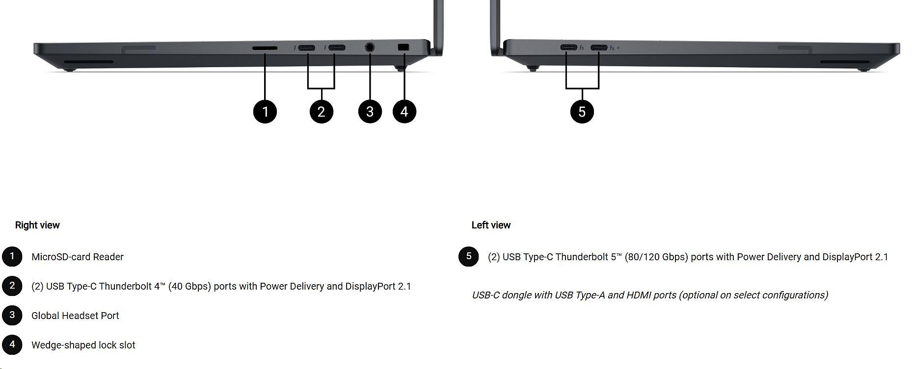 USB-C dongle with USB Type-A and HDMI ports (optional on select configurations) |