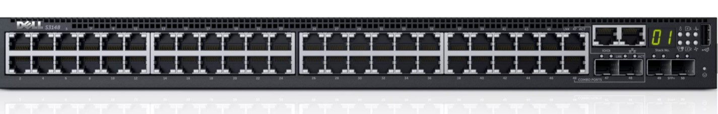 Switch Dell PowerSwitch S3148 od společnosti DELL nabízí 48 RJ-45 1 GbE portů a 2 porty SFP+ 10GbE 2x Combo. Zařízení je určeno pro montáž do racku a má výšku 1U.