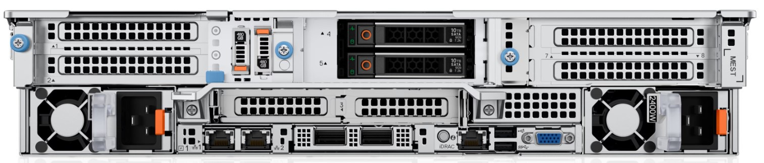 1× iDRAC RJ45 (vyhrazený port pro vzdálenou správu)