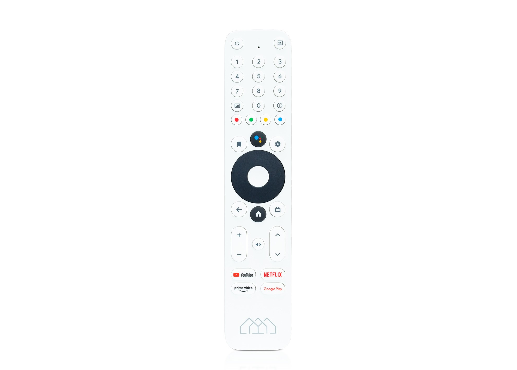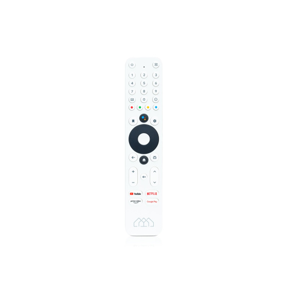 Doplňkové bluetooth dálkové ovládání pro produkty značky Homatics. Na ovládání naleznete oproti standardnímu i numerická tlačítka, barevná tlačítka, která využijete v některých aplikacích, tlačítko pro změnu AV/HDMI vstupu a samozřejmě všechna tlačítka ze standardního ovládání.