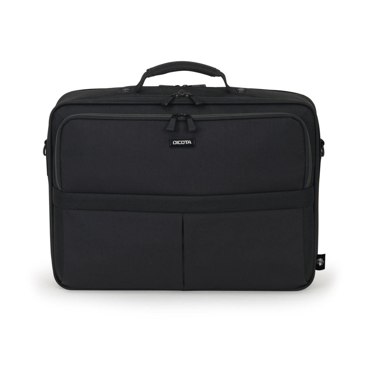 DICOTA Eco Multi SCALE 15-17,3" Taška Eco Multi SCALE nabízí vynikající ochranu pro vaše zařízení a je pohodlná a snadno se přenáší. Navrženo pro každodenní použití. Vybavena praktickými funkcemi, které vám usnadní život. V uzavíratelné hlavní přihrádce je trojnásobná ochrana pro váš 15-17,3" notebook: s okolním polstrováním z pěny s vysokou hustotou (HDF), kovem vyztuženým rámem a spolehlivým upevněním díky upevňovacímu popruhu a nastavitelné přepážce. I tablet do velikosti 12,9" můžete bezpečně uložit do polstrované výsuvné kapsy. Prostorná přední kapsa vám pomůže udržet pořádek díky funkčnímu rozdělení na přihrádky pro chytrý telefon, přenosnou nabíječku, pera a další mobilní příslušenství. Dokumenty se vejdou do samostatné přihrádky na zadní straně brašny. Pohodlně tvarovaná nýtovaná ucha pro přenášení, nastavitelný polstrovaný ramenní popruh a popruh pro upevnění na vozík na zadní straně tašky zajišťují její flexibilní používání i pohodlnou přepravu. Taška Eco Multi SCALE je pro vás ideální, pokud jste stále na cestách a chcete podpořit recyklaci PET lahví ekologickou taškou.