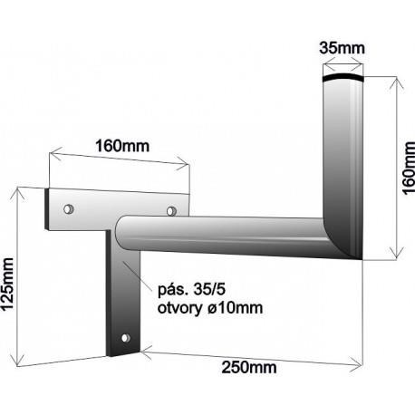Držák antény na zeď, tvar T, galvanický zinek, délka 25cm