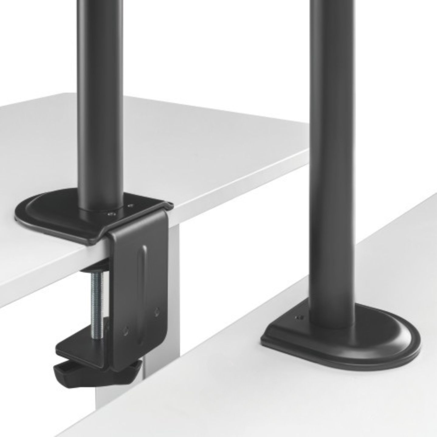 • Snadná instalace: Držák je dodáván s kompletním montážním příslušenstvím, díky němuž je možné ho snadno namontovat na stůl během několika minut. Snadná montáž pomocí svorky na desky o tloušťce 10-85 mm nebo pomocí průchodky na desky o tloušťce 10-40 mm.