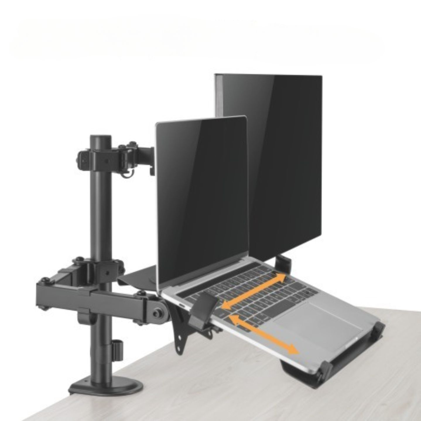 Držiak monitora Brateck LDT66-C024ML jedno kĺbové rameno + jeden držiak laptopu vedľa seba na tyčovej