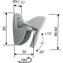 Nástěnný držák pro menší reprosoustavy * ideální pro malé efektové repro nebo menší HiFi repro do 5 kg * možnost natočení do stran a náklonu * snadný způsob uchycení * balení obsahuje 1 pár - 2 ksSpecifikace výrobku nosnost 5 kg náklon +15° -20° natáčení 180° materiál plast barva černá