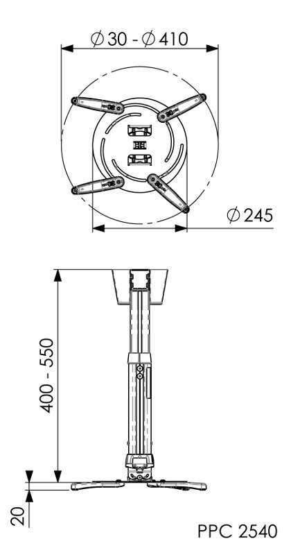 Teleskopický držák pro větší projektory - PPC 2450, délka 40 - 55 cm ideální pro montáže, kde není