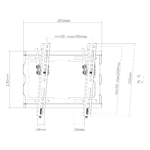 • Super tenký design s čelní plochou ve vzdálenosti pouhých 20mm od stěny • Volně sklopitelná konstrukce pro jednoduchou změnu náklonu TV v úhlu 0°~-8° • Otevřená architektura zajišťuje lepší větrání a snadnější přístup ke kabelům • Připevnění TV k držáků pomocí šroubů • Univerzální design kompatibilní s širokou řadů televizorů různých modelů a značek • Optimalizovaná velikosti balení pro nižší náklady na přepravu a skladování tj. ideální produkt pro e-commerce prodejce • Jednoduchá a rychlá montáž • Součástí dodávky je kompletní montážní příslušenství • Podporované rozteče VESA: 50x50,75x75,100x100,100x150,150x100,100x200,200x100,150x150,200x200