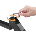 • Snadná instalace: Držák je dodáván s kompletním montážním příslušenstvím, díky němuž je možné ho snadno namontovat na stůl během několika minut. Montáž je možná pomocí svorky na desky o tloušťce 10-85 mm nebo pomocí průchodky na desky o tloušťce 10-40 mm.