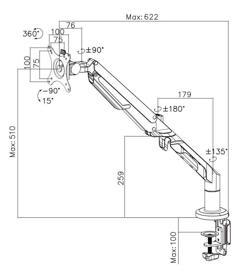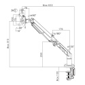 - Držák monitoru s plynovou pružinou pro snadné nastavení výšky - Pro velikosti monitorů 17" až 36" - Možnosti náklonu + 15° / - 90°, natočení + 90° / - 90° a rotace 360° - Rozměry pro uchycení VESA 75 x 75 mm a 100 x 100 mm - Upevnění pomocí svorky nebo průchodkou stolu - Nosnost 3 až 12 kg - Výškově nastavitelný 50 až 510 mm - Systém pro uspořádání kabelů součástí držáku - Instalační materiál součástí balení - Barva: bílá