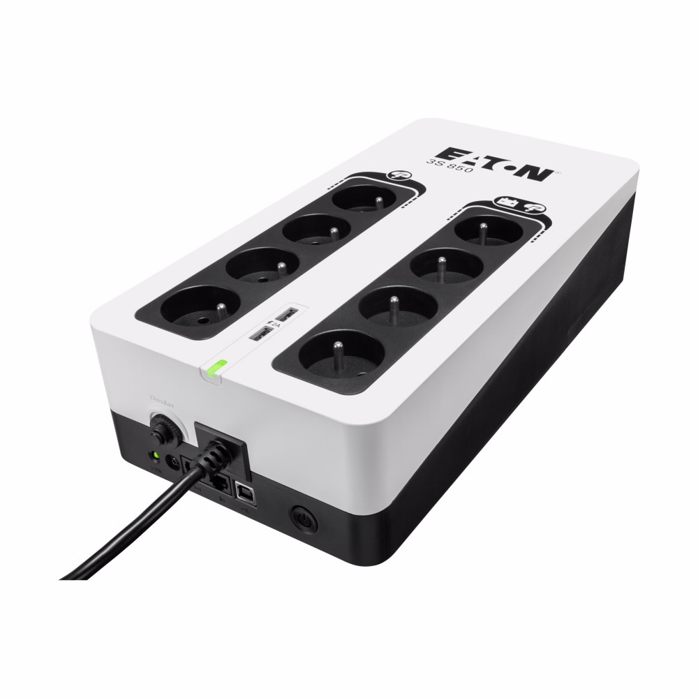 VÝSTUP Kapacita výstupního výkonu [W]: 510 Kapacita výstupního výkonu [VA]: 850 Výstupní napětí [V]: 161-284 Topologie: offline Výstupní přípojky: *2 integrované USB porty pro nabíjení mobilních zařízení *8 zásuvek pro připojení PC + periferií (Zásuvky French (FR) pro snadné připojení)