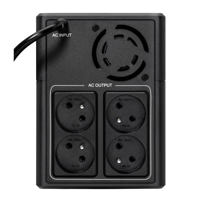 | Zvláštne charakteristiky | Regulácia napätia AVR (Automatic Voltage Regulation) Ušetrí miesto vďaka kompaktnému Tower dizajnu USB port pre automatickú integráciu s hlavným operačným systémom (Windows / Mac OS / Linux) Zahrnuté štyri FR zásuvky |