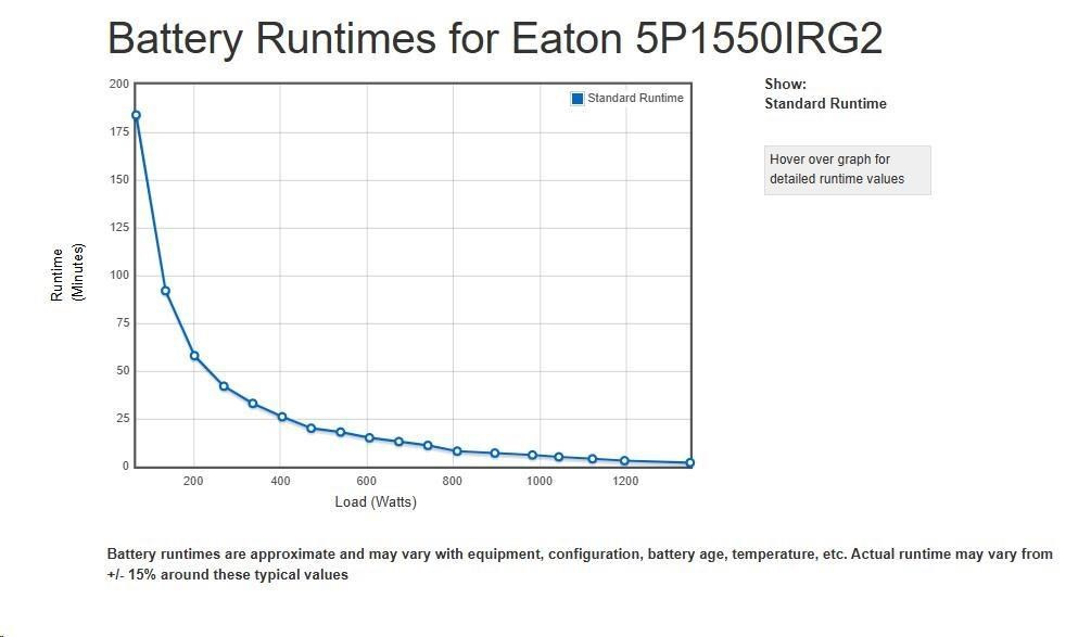 | Špeciálne funkcie | Automatická regulácia napätia (AVR) Ochrana s vysokou hustotou pre siete: len 1U Energetická účinnosť, zníženie nákladov na energiu a chladenie Poskytuje čistý sinusový výstup 1 slot pre voliteľnú komunikačnú kartu (karta pre správu siete, reléová karta alebo sieťová a priemyselná karta) Kompatibilné s virtuálnymi prostrediami (VMware, Hyper-V, Citrix Xen, Redhat) Plne sa integruje s softvérom Eaton Intelligent Power Manager 1 USB port + 1 sériový port Technológia Advanced Battery Management (ABM) pre predĺženie životnosti batérie Grafický LCD displej novej generácie Batérie vymeniteľné za prevádzky Vzdialený reštart a optimalizácia chodu vďaka 2 riadiacim skupinám zásuviek |