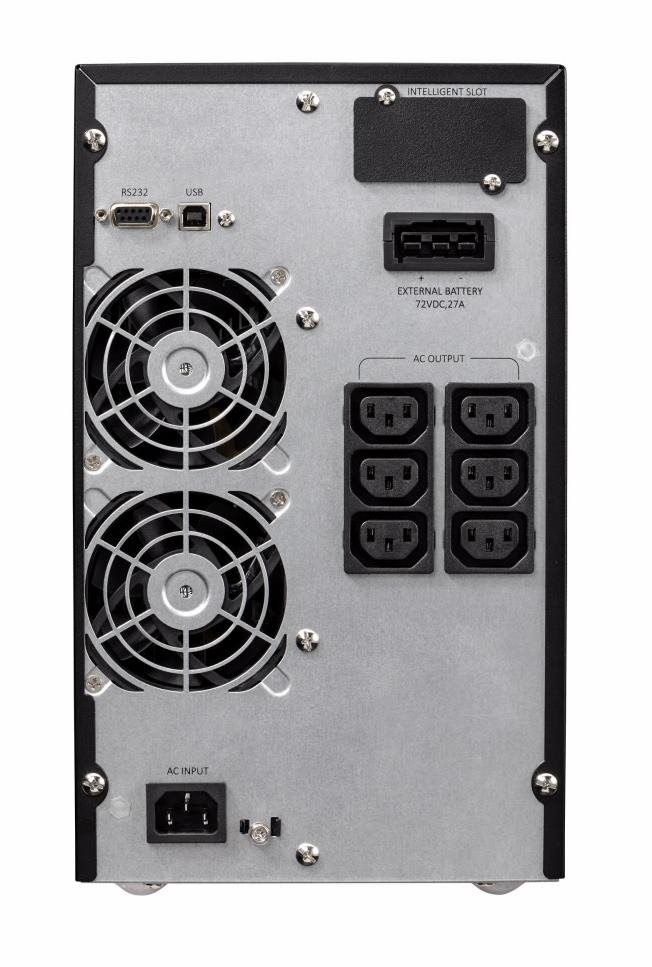 Počet zásuviek:6; Účel použitia:Server, Desktop; Prevedenie:Tower; VA:2000; Topológia:On-Line; Fáza (Vstup/Výstup):1:1; Komunikácia:USB, RS-232; Možnosti rozšírenia:Management karta, Predĺženie záložného času.