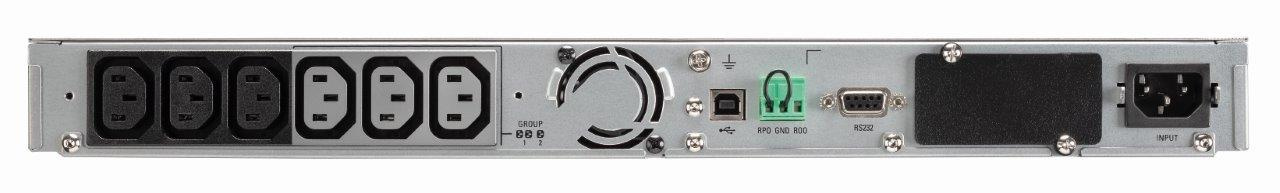 VÝSTUP Kapacita výstupního výkonu [W]: 770 Kapacita výstupního výkonu [VA]: 1150 Jmenovité výstupní napětí [V]: 230 Topologie: Interaktivní vysokofrekvenční (čistá sinusoida na výstupu, booster + reduktor) Výstupní přípojky: (8) IEC-320-C13
