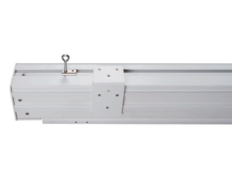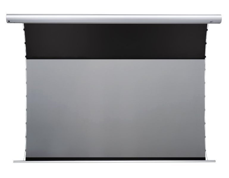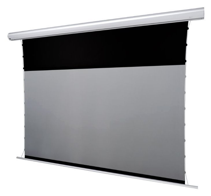 Elite Screens SKT120XH-CLR-E12 Elektrické motorové plátno série Saker Tab-Tension CLR s úhlopříčkou 120" a bílou hliníkovou konstrukcí. Plátno má zvýšený horní okraj 12" (30,5 cm) a je určeno pro projektory UST (Ultra-Short-Throw) a světlé místnosti. Dodává se v elektrické "Roll-up" konfiguraci Saker, která je napnutá lanky na bocích pro větší rovinnost. Standardní příslušenství zahrnuje infračervené a radiofrekvenční dálkové ovládání, odnímatelný klávesový spínač a bezdrátovou spoušť projektoru. Port RJ-45 umožňuje integraci řídicího systému třetí strany. Součástí je také dvojice plovoucích držáků pro instalaci pod omítku na stěnu/strop a dvojice šroubů s očkem, které se připevňují k horní části krytu pro závěsnou instalaci.
