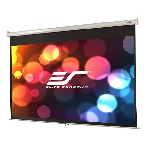 Elite Screens M139NWX Manuální nástěnné stahovací plátno s úhlopříčkou 139" a poměrem stran 16:10. Široký pozorovací úhel 180° pro komerční prezentace nebo domácí kino. Standardní provedení zahrnuje šňůrku pro hůře přístupné instalace, černé maskovací okraje po celé ploše zobrazení a duální konstrukci pro montáž na stěnu/strop.