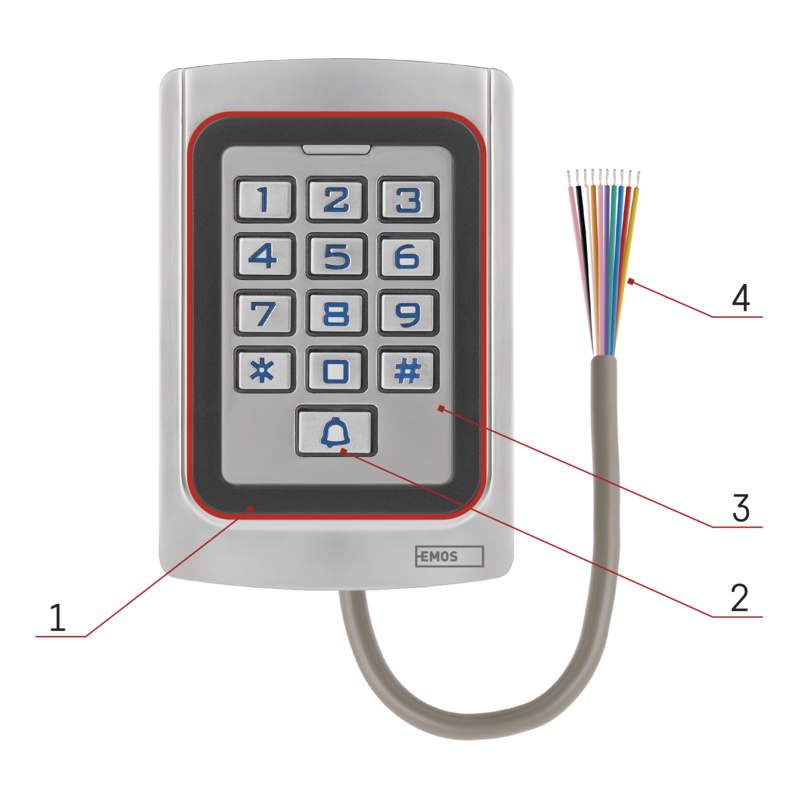 Značka EMOS Objednací číslo H5023 Produktové číslo 3069050230 EAN 8592920128862 produkt klávesnice RFID, TUYA napájení 12 V AC/DC (není součástí balení) počet kódů až 1 000 počet spínacích relé 1 podsvícení ano frekvence 125 kHz podporované OS Android, iOS kompatibilita EMOS GoSmart, TUYA, LIDL, Smartlife, Otevřený systém protokol Wi-Fi přenosová frekvence 2,4 GHz Wi-Fi ovládání hlasovými asistenty ne ukládání na SD kartu ne ukládání na cloud ano další funkce odemykání pomocí RFID čipu a PIN kódu, Wiegand input & output, zvonkové tlačítko instalační materiál šrouby, hmoždinky, imbus rozměr 23 × 78 × 115 mm prodejní obal 1 ks, krabice