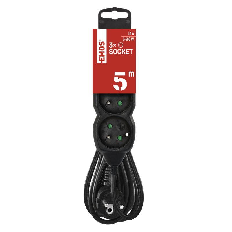 Značka EMOS Objednací číslo PC0315R Produktové číslo 1902230501 EAN 8592920112083 délka 5 m počet zásuvek 3 vypínač ne barva černá průřez vodiče 1,5 mm2 USB výstup ne napětí 250 V~ proud 16 A max. krytí IP20 typ izolace PVC max. zátěž 3 680 W vodič H05VV-F3G materiál zásuvky a vidlice plast dětské clonky ano prodejní obal 1 ks, závěs