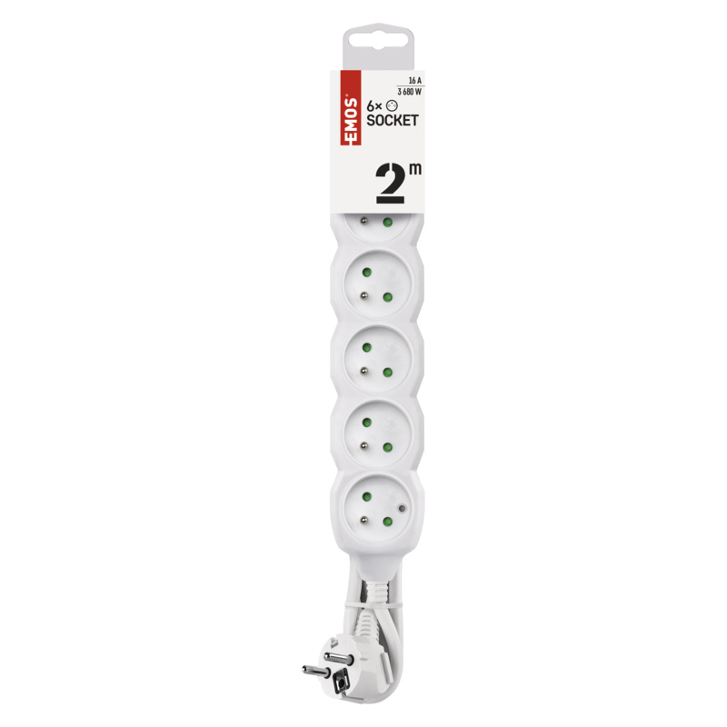 Popis EMOS Predlžovací prívod 6Z/2m 3680W, PVC, biela
