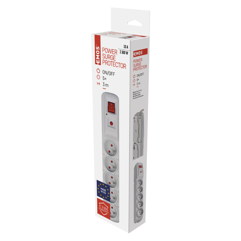Značka EMOS Obecné číslo P53874 Produktové číslo 1909050302 EAN 8595025386007 délka 3 m počet zásuvek 5× 2P + PE barva šedá jmenovité napětí 250 V~, 50 Hz jištení pojistka s čas. zpož. 10 A/250 V tel. / fax / DSL ochrana ne dětské clonky ano max. proudová zátěž 10 A max. ochrana proti přetížení ano absorpce energie 150 J garance 2 000 € doba odezvy <25 ns ochranná úroveň Up 1,3 kV (L/N) anténní (koaxiální ochrana) ne EMI/RFI filtr ne indikátor přepětí ano max. zátěž 2 300 W indikátor zapojení ne rozsah kmitočtu neuvádí se USB výstup ne útlum neuvádí se vodič H05VV-F3G 1,0 mm2 zkušební vlna U0c 4 kV rozměr 330 × 54 × 55 mm prodejní obal 1 ks, krabice