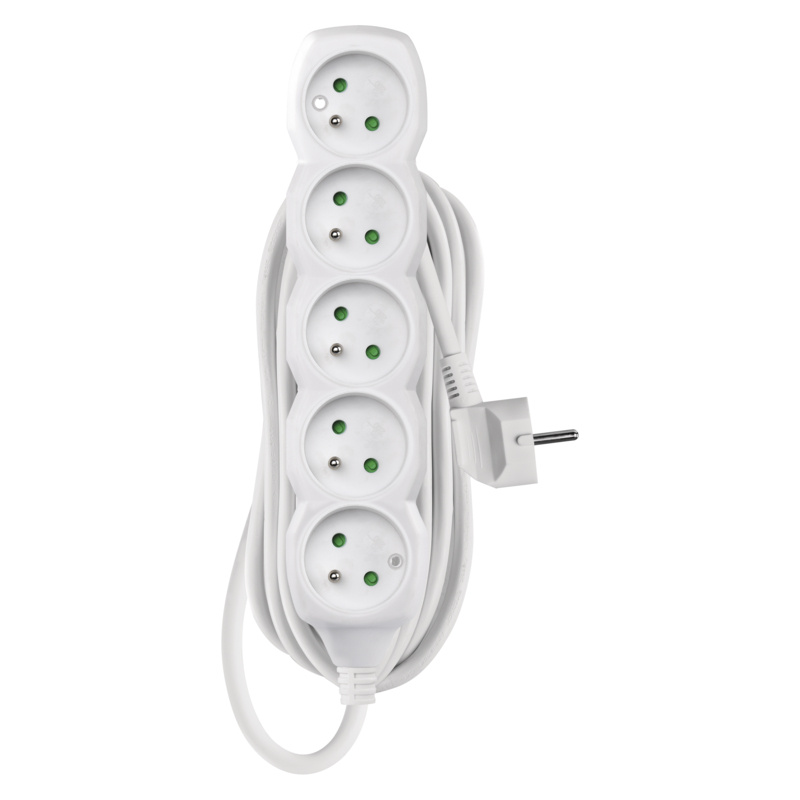 Nejdůležitější parametry délka 5 m počet zásuvek 5× 2P + PE vypínač ne barva bílá Ostatní parametry napětí/proud 250 V~/10 A max. USB výstup ne max. zátěž 2 300 W vodič H05VV-F3G 1 mm2 materiál zásuvky a vidlice plast typ izolace PVC dětské clonky ano prodejní obal 1 ks, závěs