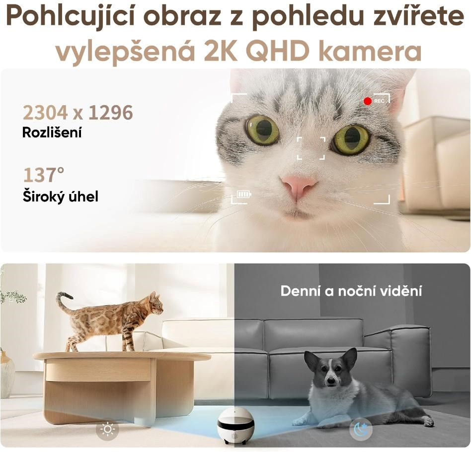 Špičková 2K kamera prináša ostré a realistické zábery v každej situácii. Široký uhol záberu 137° umožňuje zachytiť väčšiu časť miestnosti bez nutnosti otáčania kamery, takže ľahko sledujete dianie aj v rohoch priestoru. Vďaka vysokej kvalite obrazu a plynulému streamovaniu je robot ideálny na monitorovanie domácnosti aj nahrávanie nezabudnuteľných okamihov vašich miláčikov.