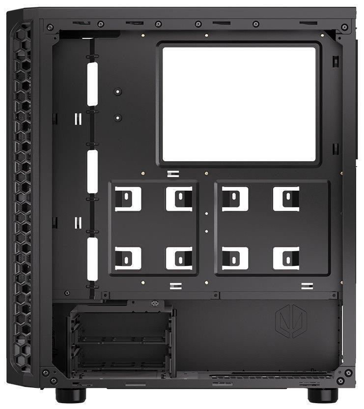 Skriňa formátu Middle Tower ponúka dve 2,5" pozície pre SSD disky a dve 3,5" pozície pre pevné disky. Na vrchu sa nachádzajú dva USB 3.0 porty, slúchadlový výstup a vstup pre mikrofón. Je vybavená jedným 120 mm ventilátorom, ktorý spolu s perforovaným čelom zabezpečuje dostatočný prúd vzduchu. Dômyselné riešenie umožňuje pohodlné umiestnenie až 360 mm dlhého výmenníka vodného chladenia na prednej strane. Vo škrini je dostatok priestoru pre chladič CPU do výšky až 161 mm a grafickú kartu dlhú až 350 mm. Dodáva sa bez zdroja. Súčasťou je aj sada prachových filtrov.