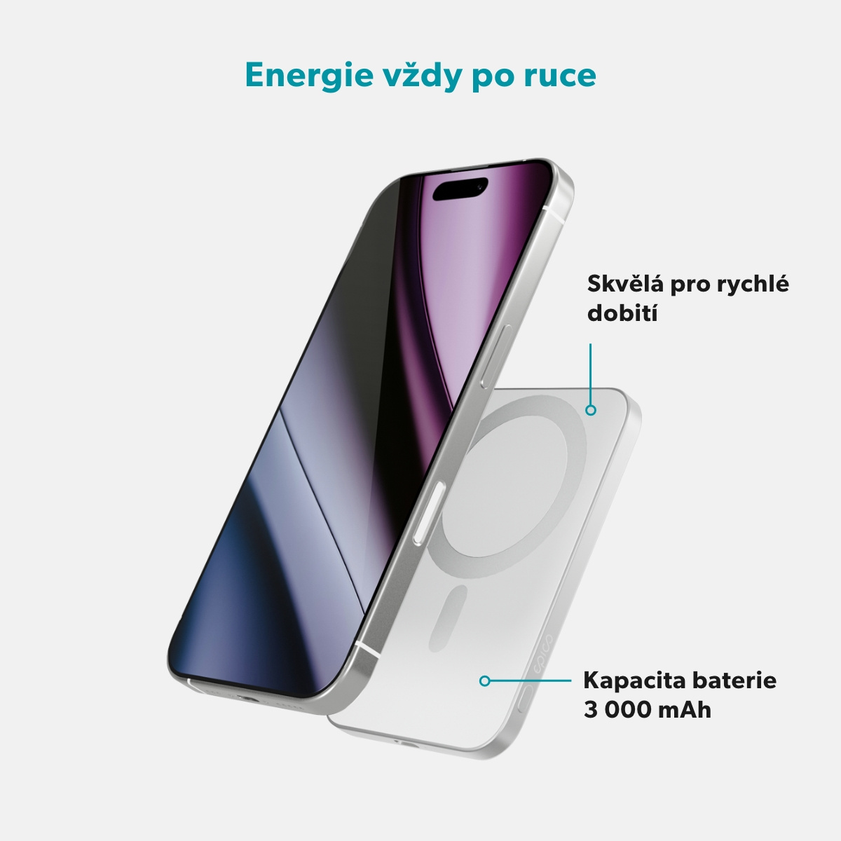 Kompatibilita MagSafe a Qi2: Bezproblémové bezdrátové nabíjení s bezpečným magnetickým uchycením. Ultra-tenký design: S ultra-tenkým profilem pouhých 6 mm se pohodlně se vejde do kapsy. Kapacita 3 000 mAh: Poskytuje spolehlivé záložní nabíjení, dostatečné pro dobití iPhonu 16 Pro až na 50 %.* Bezdrátový výstup: Efektivní bezdrátové nabíjení s maximálním výkonem 7,5 W. USB-C výstup: Rychlé nabíjení přes USB-C s maximálním výkonem 10 W. Hliníkové tělo: Prémiové a odolné hliníkové tělo zabraňuje přehřívání. Šestinásobná ochrana: Vybaveno ochranou proti přepětí, přebití, přetížení, nadměrnému vybití, nadproudu a zkratu. Součástí balení: 0,3m USB-C na USB-C kabel.