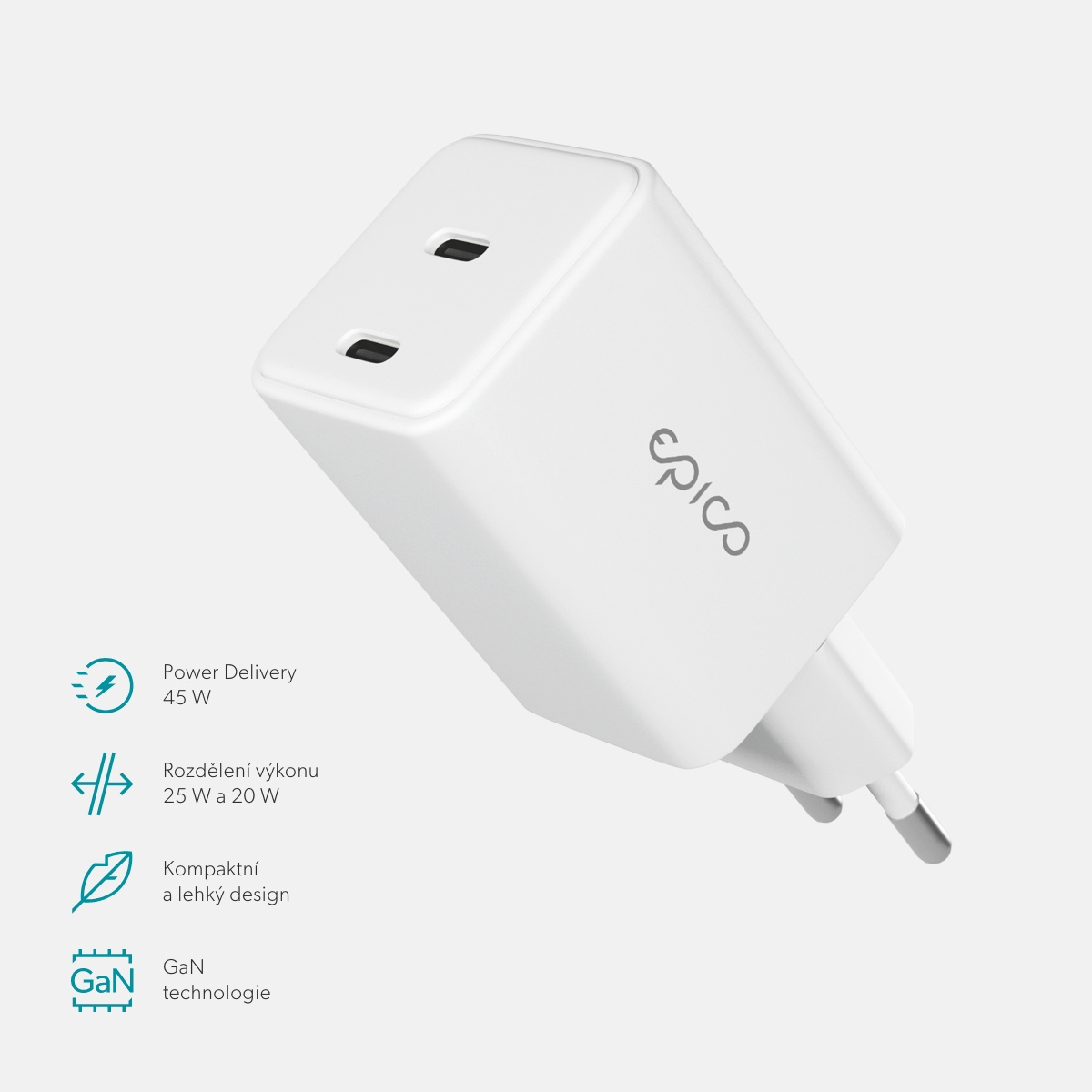 Popis Epico UltraBoost GaN 45W sieťový adaptér EA45 - biela