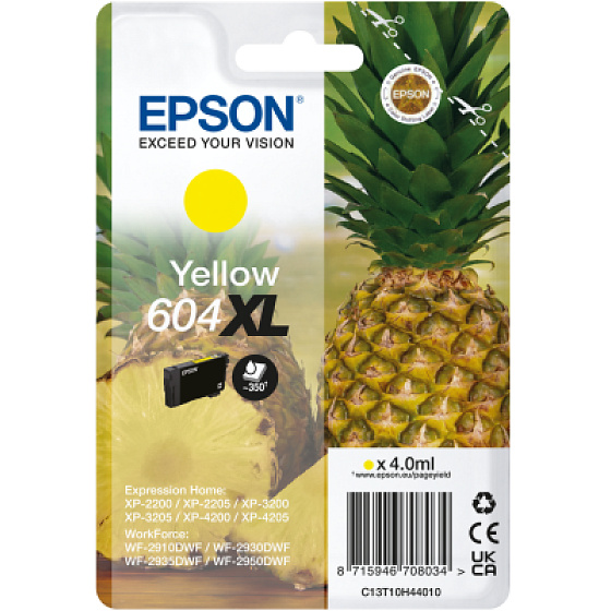 Spolehlivé čtyřbarevné samostatné inkousty Epson jsou ideální pro každodenní tisk. K dispozici je cenově dostupná kazeta pro všechny uživatele, se standardními velikostmi i velikostmi XL, které jsou dostupné v baleních Single a Multipack. V prodejně je snadno najdete podle obrázku s ananasem.