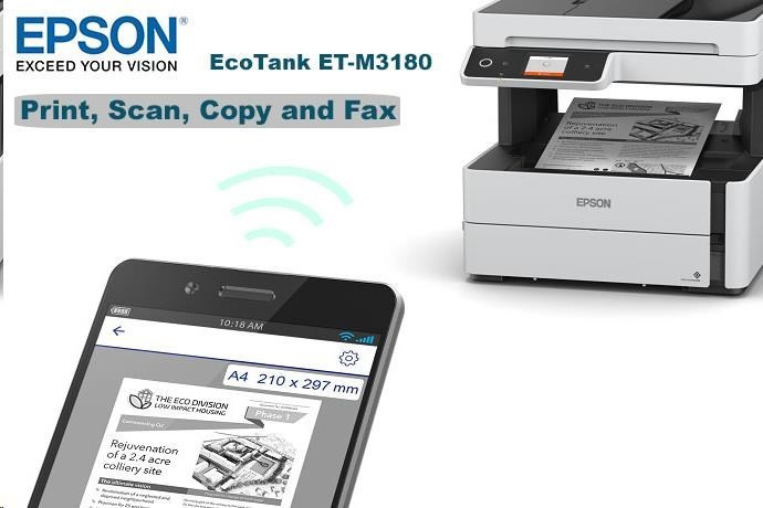 Atramentová tlačiareň EPSON EcoTank Mono M3180, 4v1, A4, 39 str./min, Ethernet, Wi-Fi (Direct), duplex, LCD, ADF, Trade In 1000 Kč