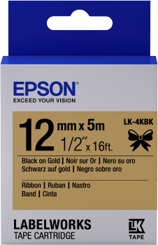 Popis Epson zásobník so štítkami – saténový pásik, LK-4KBK čierna / zlatá, 12 mm (5 m)
