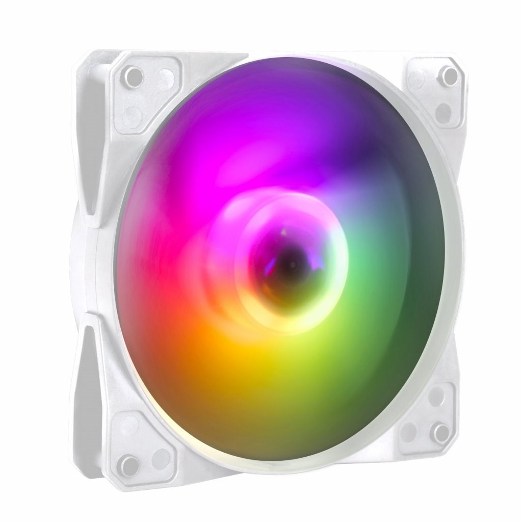 ARGB LED ventilátor typu rainbow s LED diodami. Ventilátor umožňuje naraz zobraziť všetkých sedem farieb dúhového spektra. Ide o podriadený ventilátor, ktorý je určený na použitie s ventilátorom EVOLVEO 12FM. LED osvetlenie je ovládané pomocou tlačidla reset alebo LED tlačidla na ovládacom paneli skrine alebo pripojením priloženého ARGB kábla k základnej doske.