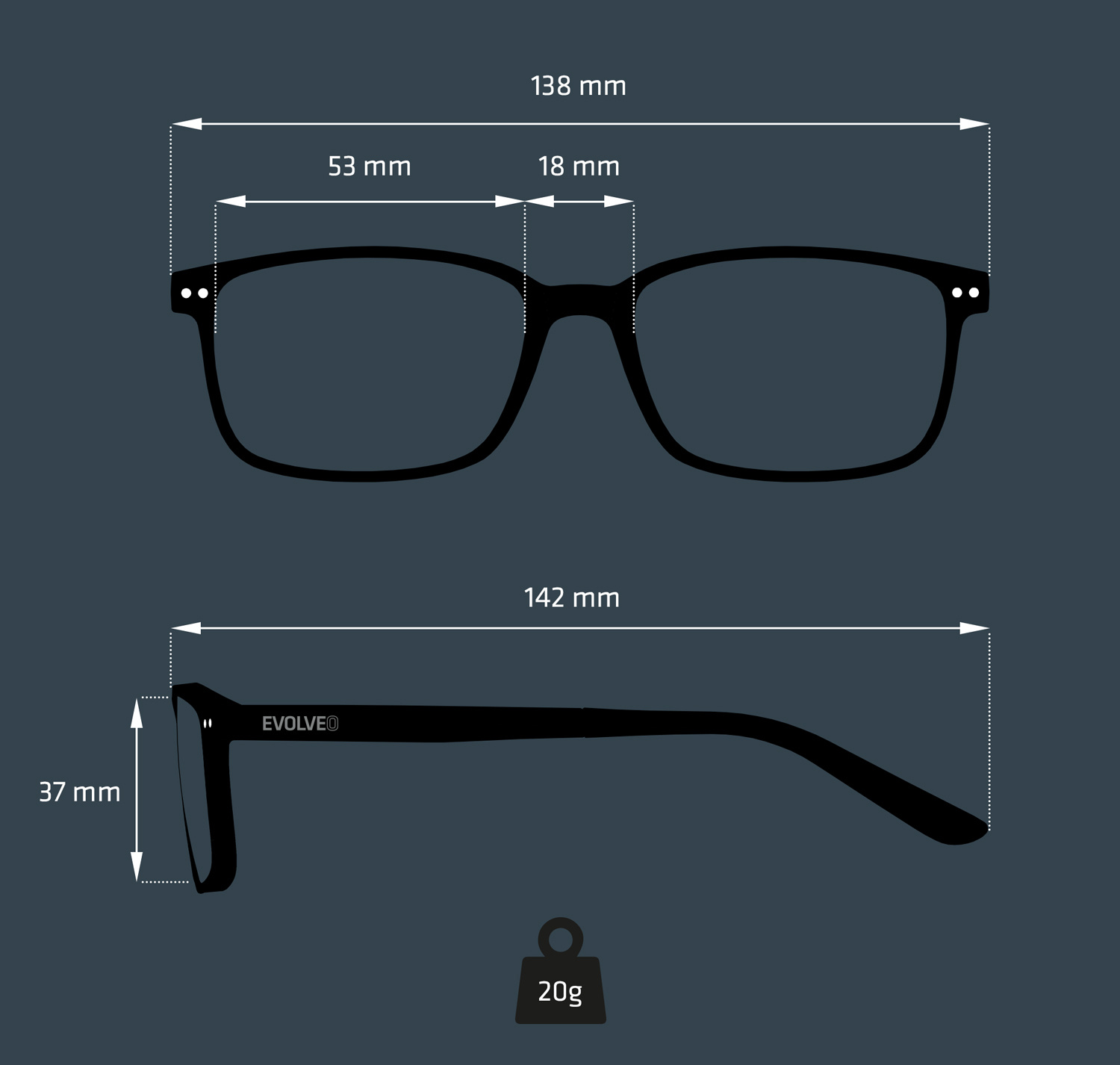 S hmotností pouhých dvacet gramů jsou tyto brýle tak lehké, že je můžete nosit celý den, aniž byste je vůbec vnímali. Měkčené pryžové koncovky navíc zaručují, že se vám nebudou ani při mnohahodinové práci zařezávat za uši. A zárukou vašeho pohodlí je i pružinové uzavírání postranic, které se dokáže přizpůsobit každé hlavě. Brýle EVOLVEO BlueBlock40 nezavírají oči ani před uživateli s atypicky širokou hlavou. Jejich postranice se totiž mohou vyklopit až o 45 stupňů směrem ven, takže si je pohodlně nasadí skutečně každý.