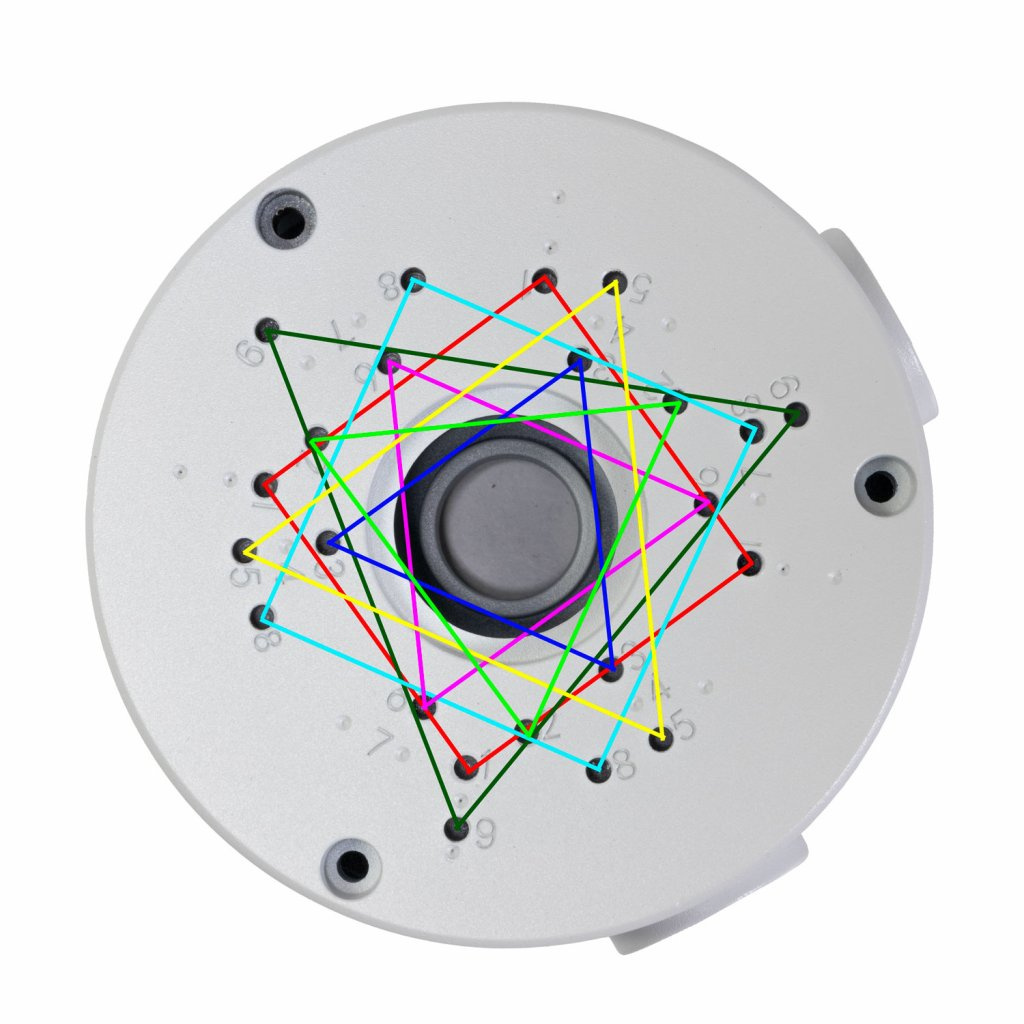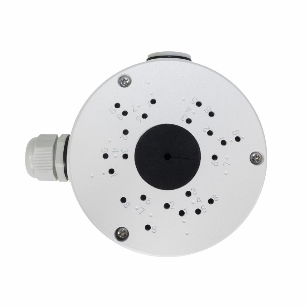 Instalační box pro kamery kamerového systému EVOLVEO Detective, vyrobený z hliníkové slitiny opatřený sadou těsnění a příslušenství pro montáž kamer. Umožňuje schovat konektory pro připojení kamery a ochránit je před povětrnostními vlivy. Na boxu jsou závitové otvory označené čísly pro uchycení všech druhů kamer, použitých s kamerovými systémy EVOLVEO Detective. Krabici lze využít i pro kamery jiných výrobců, vždy je nutné ověřit rozteč a uspořádání otvorů viz tabulka na obrázku.